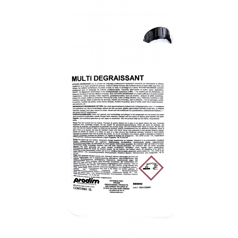 Multi dégraissant convient parfaitement pour le nettoyage de cuisines professionnelles, industries alimentaires et toutes autres applications HACCP.