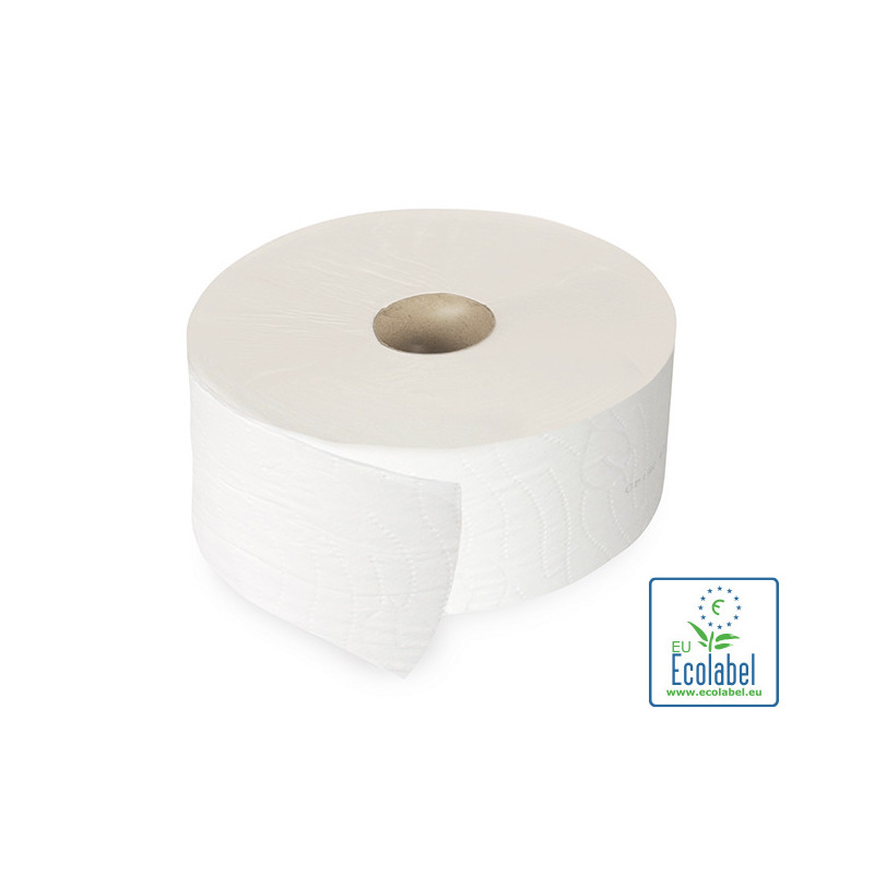 Papier toilette maxi jumbo 340 mètres 2 plis blanc avec motif feuille prédécoupé, 100% pure ouate de cellulose - 2x16,5gr/m².